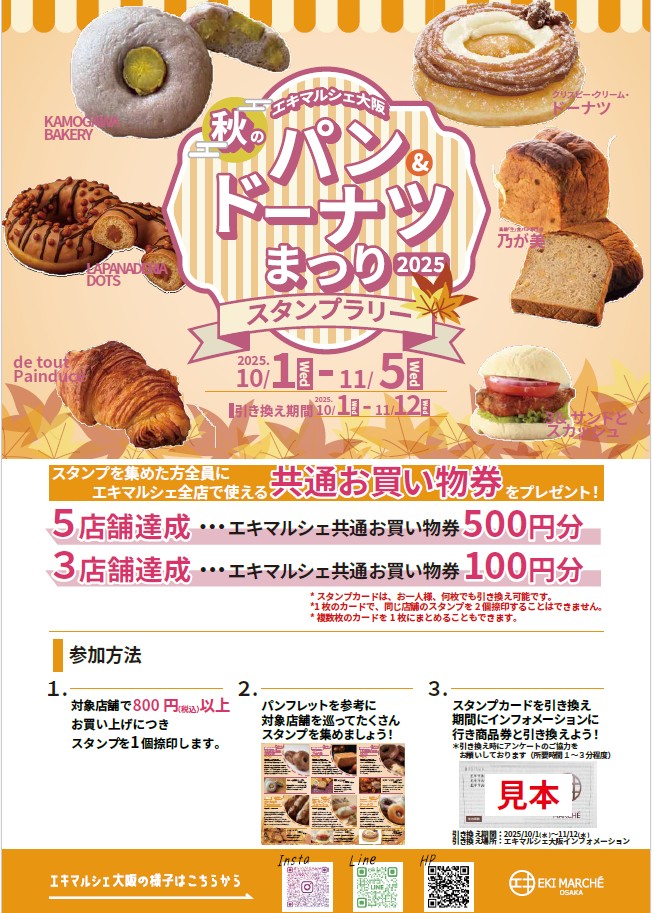 We will hold [eki marche Osaka Autumn Bread Festival] from October 1 to November 5! 🎉;